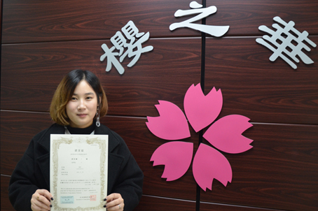 孙铭同学在我校报读J-Test 0-C套餐课程和EJU日本留学生考试课程,通过努力学习,顺利考取J-TEST F等级证书,目前在我校继续学习中级课程,2017年10月份赴日本留学.
