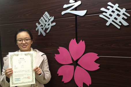 陈昱同学在我校报读J-Test 0-C外教口语套餐课程,通过努力学习,顺利考取J-TEST E等级证书,目前在我校继续学习中级课程,2017年4月赴日本留学.