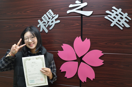 :刘和宁同学在我校报读J-Test 0-C套餐课程,通过努力学习,顺利考取J-TEST F等级证书,目前在我校继续学习中级课程,2017年4月赴日本留学.