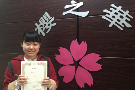 简介:隋雪凝同学在我校报读0-N2直通车课程,通过努力学习,顺利考取J-TEST F等级证书,目前在我校继续学习中级课程,备考2017年7月JLPTN2考试。