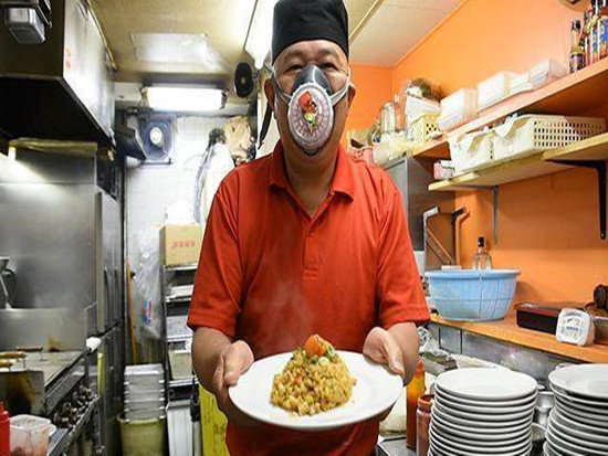 就连59岁店主長縄慶三在料理「死神炒饭」时都要戴着口罩,以免被呛到。