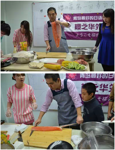 樱之华11月寿司大会在今天圆满结束了,来参加的同学即大饱眼福也大饱口福!经过忙忙碌碌的一下午,同学们自己也做出了非常优秀的作品,互相品尝。下面带来活动现场照片,没来参加的同学也不要灰心,樱之华12月中日红白歌会也将在樱之华隆重举行!想参加的同学赶紧来报名!报名热线0532-66889906!