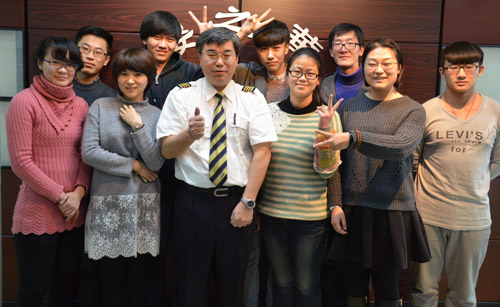 一部分参加讲座的同学和伊藤先生合影留念,虽然伊藤先生是青岛支店的机务经理,但是非常和蔼近人,同学们也都很喜欢和伊藤先生交流。