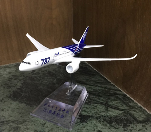 最后伊藤先生在今天的演讲即将结束的时候,赠予了我校日本全日空青岛开航20周年的精美的纪念模型。