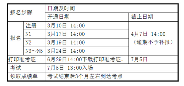 据悉,网上报名分两个阶段进行。第一阶段仅进行个人信息注册和上传电子照片;第二阶段除考生可继续注册外,按N1、N2、N3~N5的顺序依次分别开放考试名额供已完成个人信息注册与上传电子照片的考生选择级别和考点,此阶段考生需要完成预定考位和支付考费等全部报名手续。
