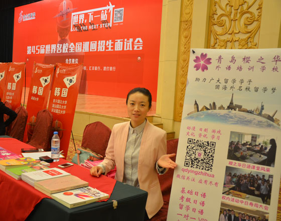 金吉列留学中介3月29日在青岛黄海饭店举行了春季留学巡展,而青岛樱之华外语学校有幸受邀参加,在会场中与来自全球各地的名校交流并为打算去日本留学的学生以及家长答疑,青岛樱之华外语培训学校有信心作为青岛最好的日语学校,唯有意向赴日的学员提供最好的教学服务以及最完善的日语环境!