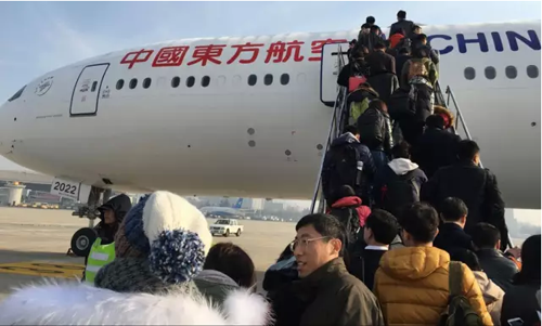 登机牌办理和行李托运都非常的顺利,飞机准点起飞,同学们先踏上了去上海的旅程。