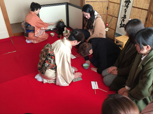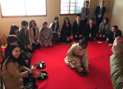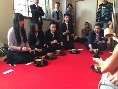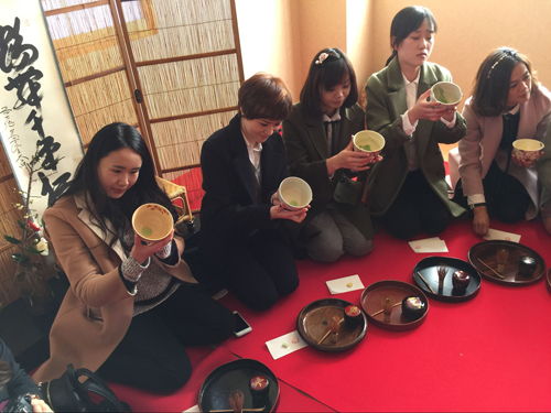 之后还有日本的传统茶道体验课,在课堂上我们不仅见识到了日本的传统茶道,还品尝到了美味的日本茶点。并且学员们还亲身体验了抹茶的制作,给同学们留下了日本茶道的深刻的印象。