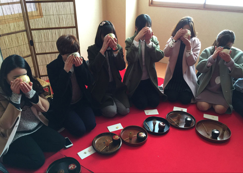 大家品尝自己做的抹茶之后,都在互相讨论着味道与心得